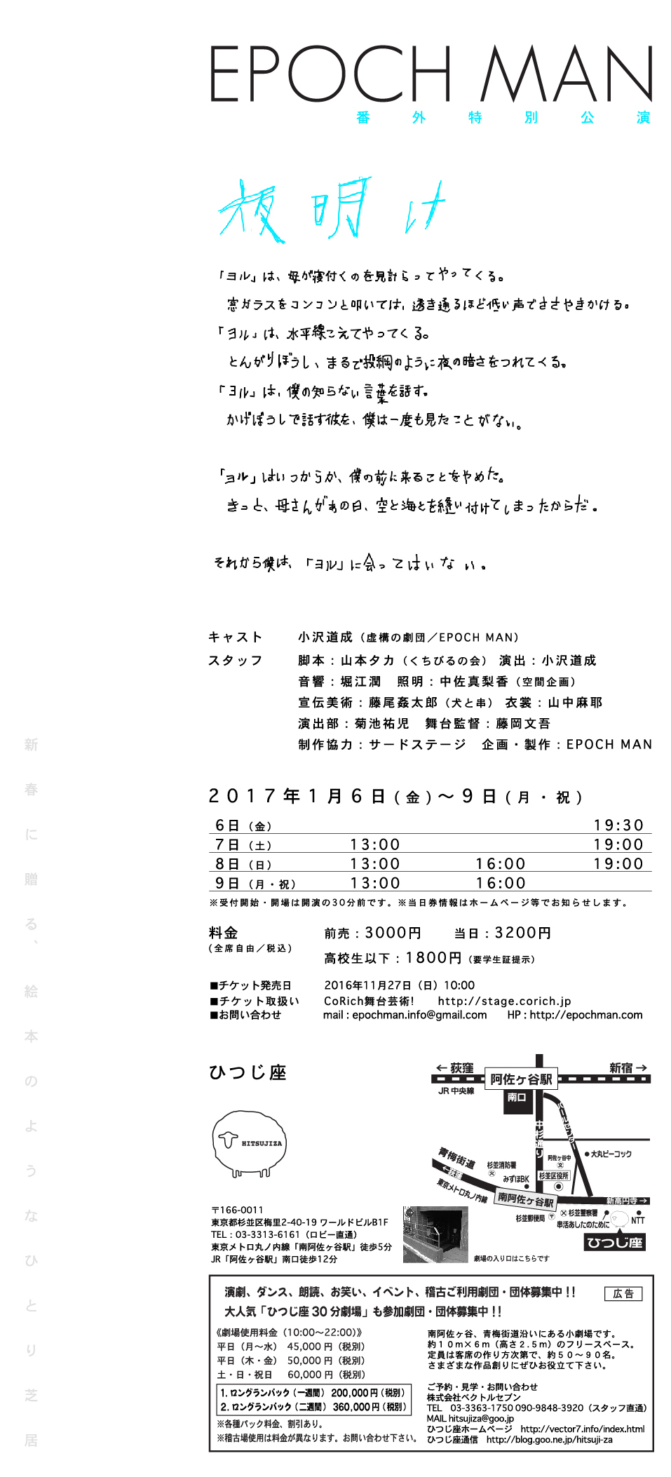 写真 moco / 演出部 菊池祐児 / 舞台監督 藤岡文吾 / 制作協力 サードステージ / 企画・製作 EPOCH MAN